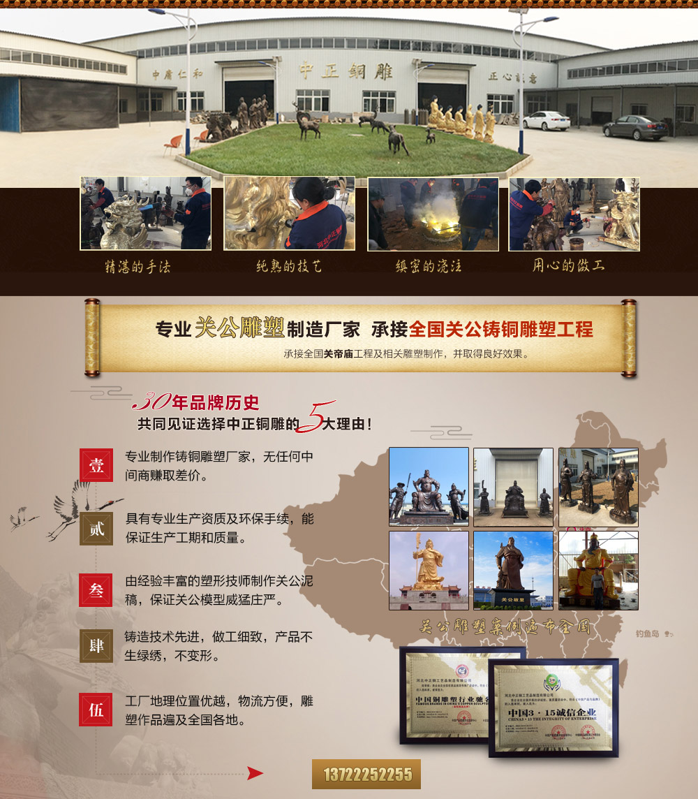 河北中正鑄銅工藝品制造有限公司是一家專業制作鑄銅動物雕塑的生產廠家。擁有完善、大型、先進的鑄造生產設備,并由數位經驗豐富的高級鑄造技師指導生產及制作。我們公司主要鑄造動物銅雕、銅獅子、銅麒麟、銅牛、銅馬、銅鹿、銅大象等,可按客戶提供動物銅雕圖片訂做、加工動物銅雕,動物銅雕塑,我們的產品做工精美,造型生動,用銅扎實,質量有保證。